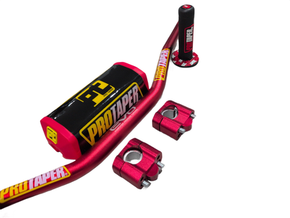 "Evo" ProTaper RED Handlebar Fat Bar DIRT BIKE 1 1/8'' Full Set GRIPS Pads