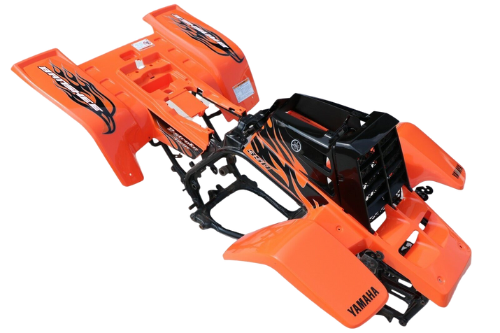 Revitalize your Yamaha Banshee with a comprehensive kit that combines striking aesthetics and unmatched protection for the ultimate off-road experience.